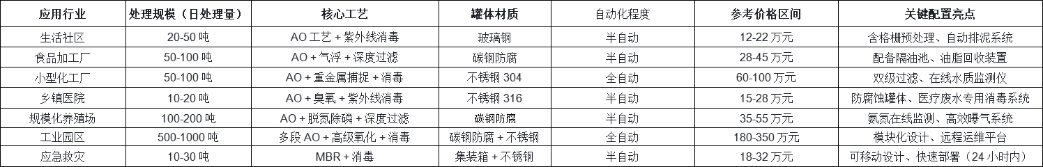 二、2025 年各行業污水處理設備細分報價表