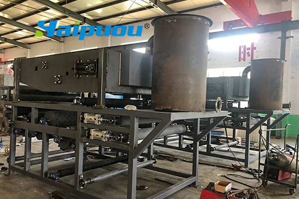 2、重力脫水段長,第一與第二重力脫水段總長5m多,使污泥在壓榨前充分脫水失去流動性。同時,重力脫水段還設置反轉等特殊機構,經“楔”形、“S”形壓榨等作用使污泥濾餅獲得低的含水量。